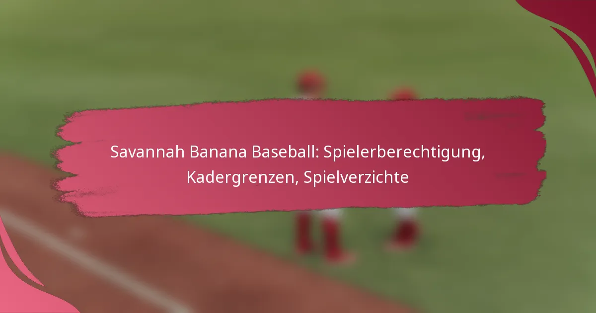 Das Savannah Banana Baseball-Team hat spezifische Teilnahmebedingungen für Spieler festgelegt, einschließlich Altersbeschränkungen und Erwartungen an das Fähigkeitsniveau, um einen fairen Rekrutierungsprozess zu gewährleisten. Mit einer typischen Kadergröße von etwa 30 Spielern behält das Team Flexibilität bei und fördert gleichzeitig die Wettbewerbsfähigkeit. Darüber hinaus ist es für die Teams wichtig, die Bedingungen zu verstehen, die zu Spielniederlagen führen können, wie z.B. Fragen zur Teilnahmeberechtigung und Verstöße gegen die Kaderregeln, um Strafen zu vermeiden und eine reibungslose Saison zu gewährleisten.